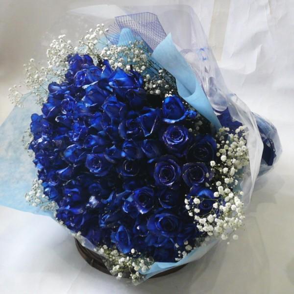 バラ シルバーラメ ブルーローズ100本 かすみ草花束 Bsr100 フラワー