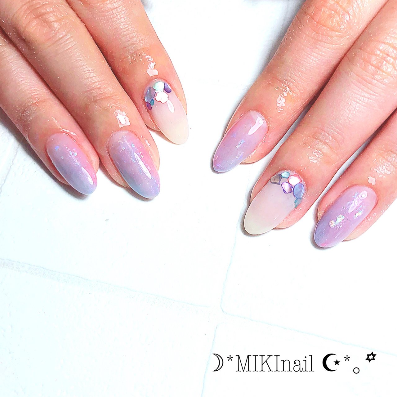 夏 梅雨 ハンド グラデーション シェル Miki Nailのネイルデザイン
