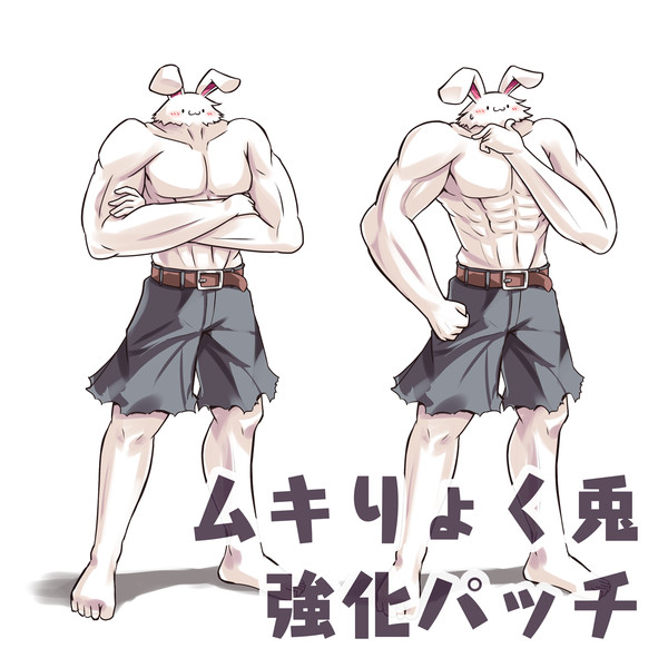 フリー素材 ムキりょく兎強化パッチ 腕組みポーズ 考察ポーズ