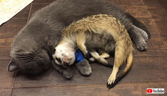 病気の猫に寄り添うミーアキャット 2匹の大きな愛を感じる動画に癒や