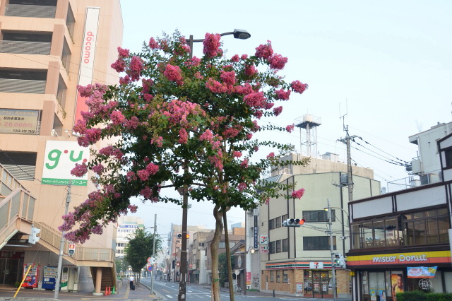 街路樹のピンクの花 はなせんせ