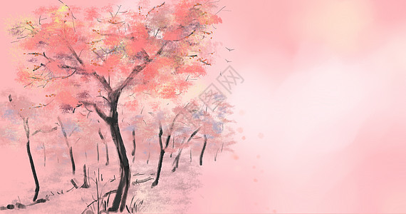 中國風水彩畫花枝山水畫 花枝 中國風水彩畫春夏節氣海報背景素材