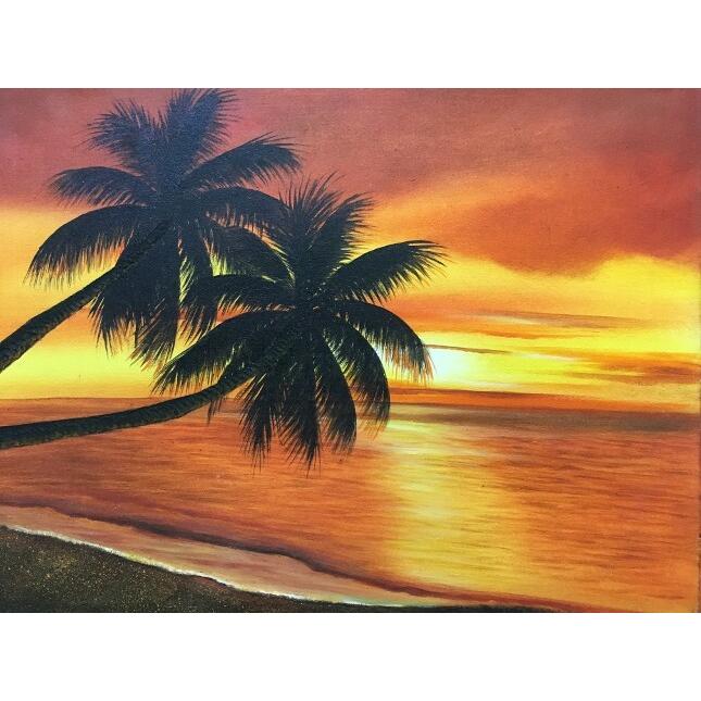 バリの絵 海の絵 ヤシとサンセット 1136 W50 H40 壁掛け アート 風景